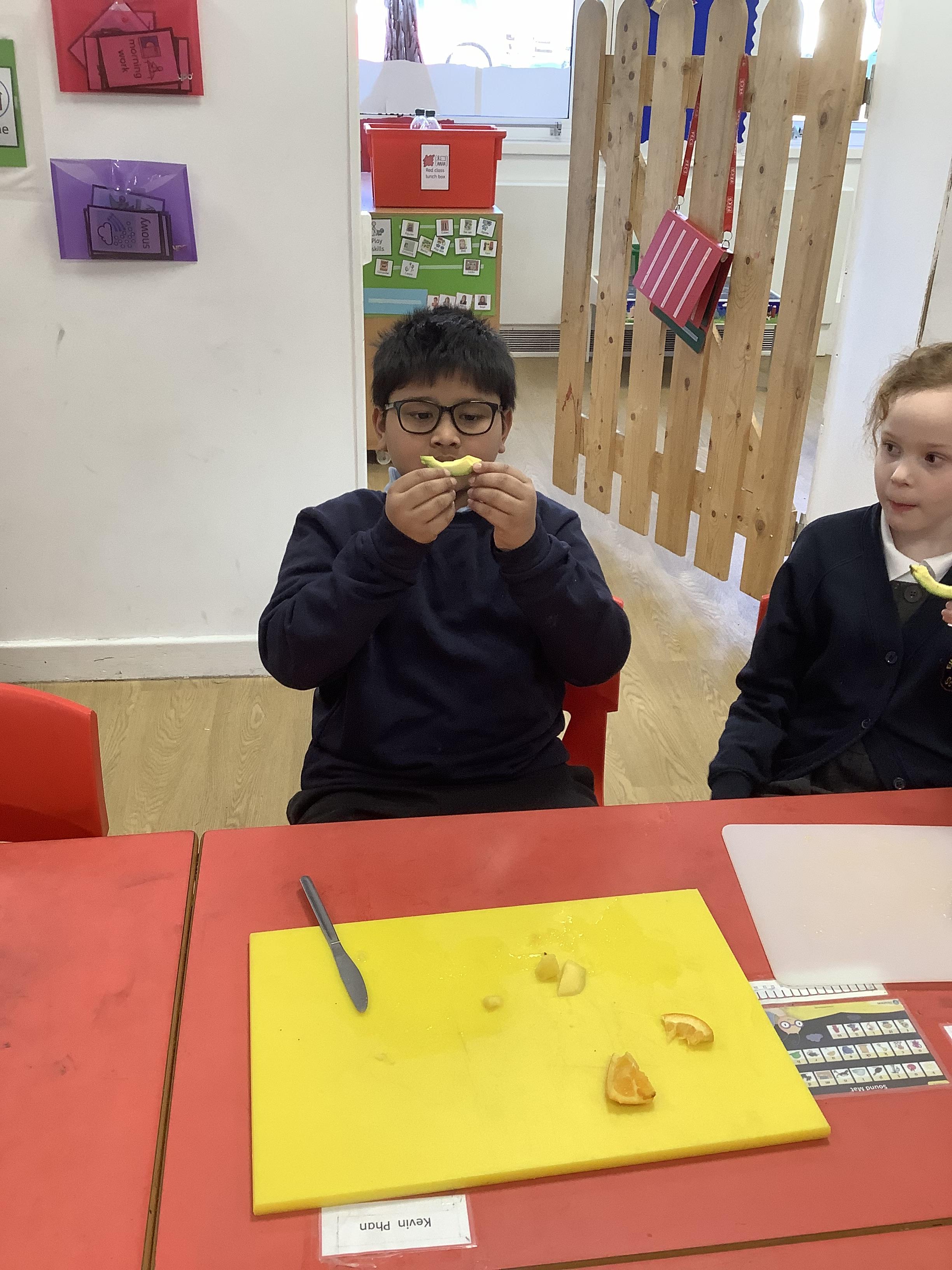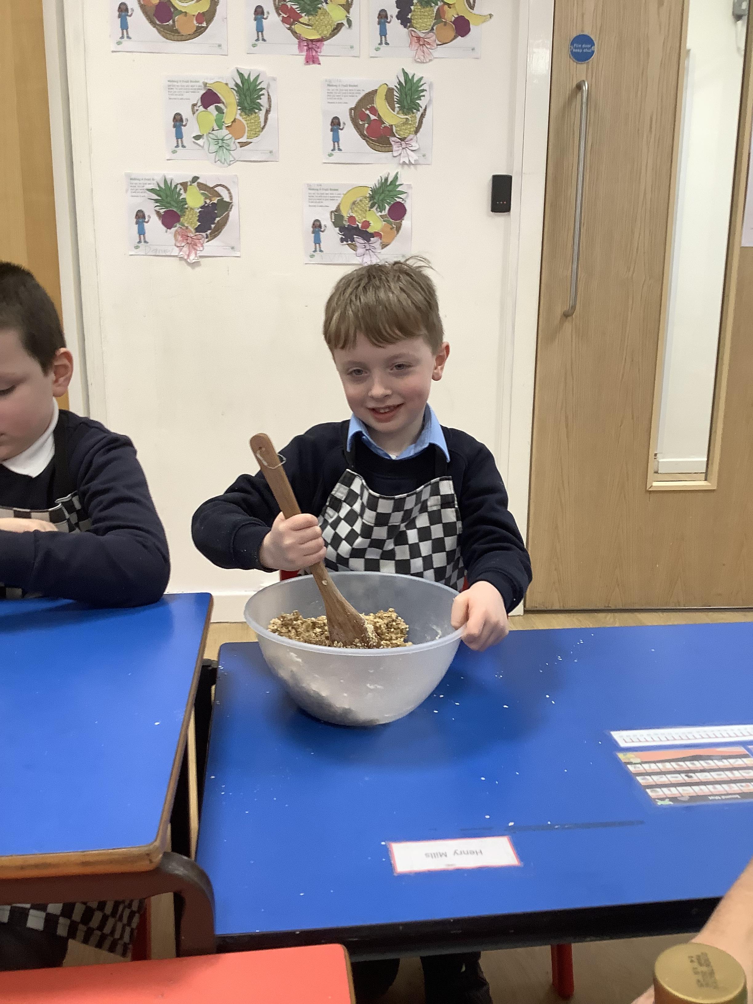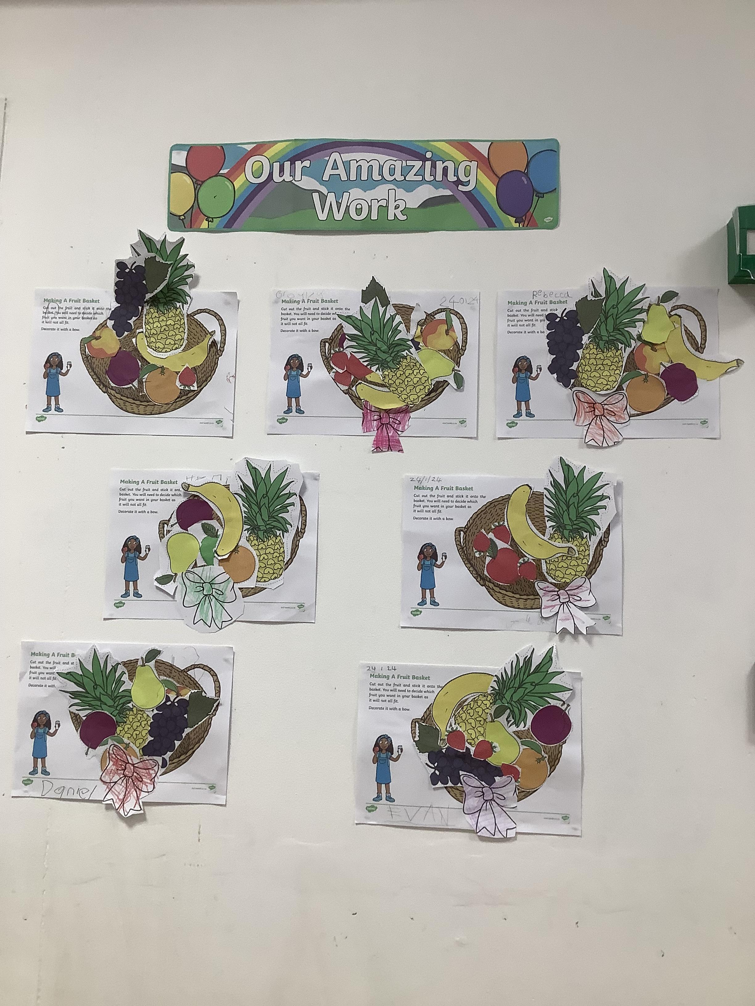 During the Spring term theme 'Food glorious food' we explored use of colours as well as mixing primary colours to create secondary colours. The children also decorated lots of fruits and vegetables for our class display which looked fantastic. The children also explored the 4 families of instruments and compared instruments to one another such as how they are played, their features, and the sound that they make. In DT food, the children have practiced hand washing, turn-taking, and various skills in preparing and mixing ingredients to bake lots of different foods.